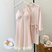 Silk Serenity Robe & Padded Chemise Night Set - Light Pink / M