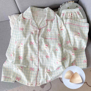 Cats & Bows Padded Nightsuit Set - Light Blue / M