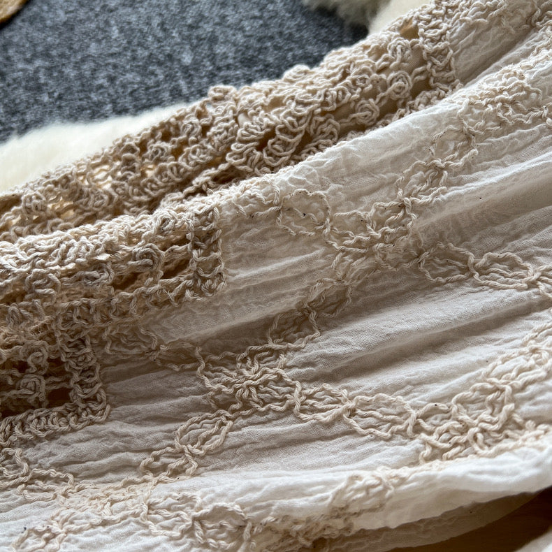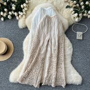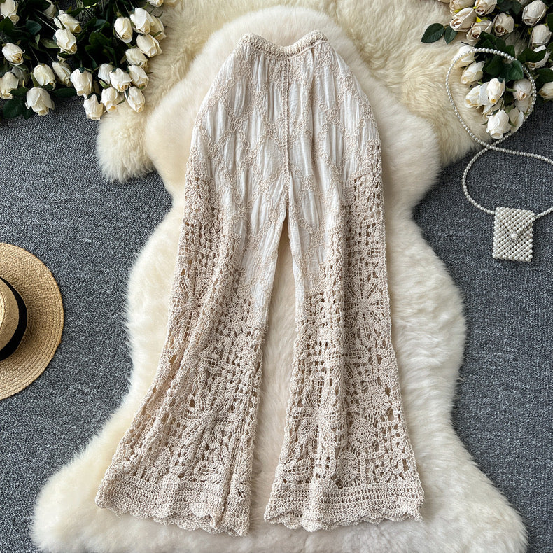 Add a touch of effortless bohemian charm to your wardrobe with these crochet lace wide-leg pants. Featuring intricate lace detailing at the hem and a comfortable high-waisted fit, these pants combine elegance and relaxation. Perfect for beach outings, casual brunches, or vacation strolls, their lightweight fabric ensures breathability and style in warm weather. Available in versatile neutral tones, pair them with a crop top or flowy blouse for a chic, boho-inspired look.