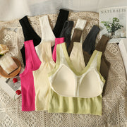 Discover the convenience and comfort of our bra camisole with built-in padding. Made from soft, skin-friendly cotton, it offers a snug fit with an elastic band and integrated chest pads. Perfect for wearing indoors or out, it eliminates the need for extra layers and stays securely in place with fixed pads and elasticated lower hem. Ideal for summer, this camisole combines practicality with style, ensuring you feel supported and stylish wherever you go.