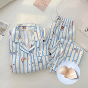 Drift into dreamy comfort with our Blue Paw Paradise Padded Nightsuit Set – a playful blend of style and coziness featuring adorable dog prints on soothing blue-and-white stripes. Designed with removable built-in padding for gentle support, this soft nightsuit is perfect forelaxed lounging or a cozy night’s sleep.