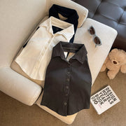 Command attention with our Bossbabe Collared Built-In Bra Top. This chic, sleeveless top features a sophisticated collar and a V-neckline with a full button-down front, blending classic style with modern comfort. The built-in bra provides seamless support, making it a polished and practical choice for the office or a night out.