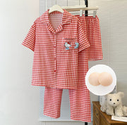 Kitty Gingham Padded Nightsuit -3pc Set - Red / M