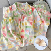 Sleep in style and comfort with our Lovey Dovey Padded Nightsuit, designed for cozy nights and relaxed mornings. This 3-piece set includes a button-down top, matching bottoms, and  padded support for extra comfort. Made with soft, breathable fabric, it features a cute pastel heart print that adds a playful yet chic touch. Perfect for lounging, bedtime, or even a lazy weekend at home.