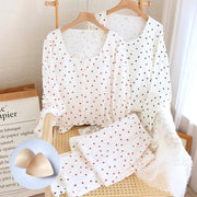 Tiny Hearts Padded Nightsuit Set - Red Hearts / M