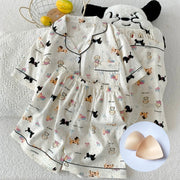 Drift into cozy dreams with our Woof & Snooze Padded Nightsuit – featuring adorable dog prints that add a playful touch to your bedtime look. Designed with removable built-in padding for light support and all-night comfort, this soft and breathable set is perfect for lounging or enjoying a peaceful sleep