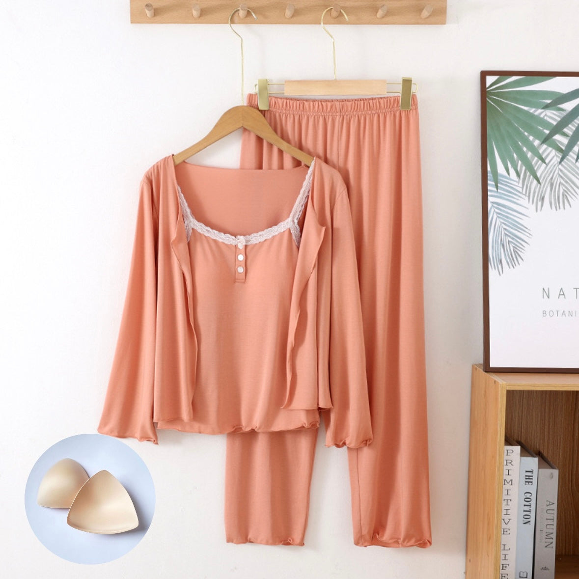 Serene Comfort Padded Nightsuit - 3Pc Set - Orange / M