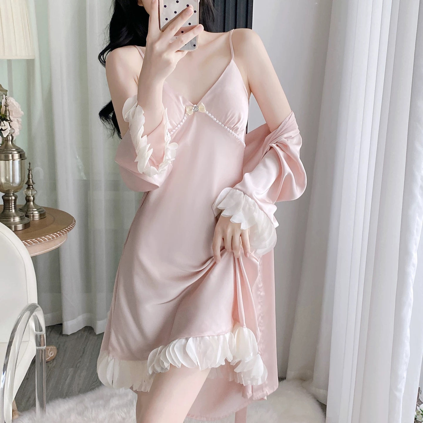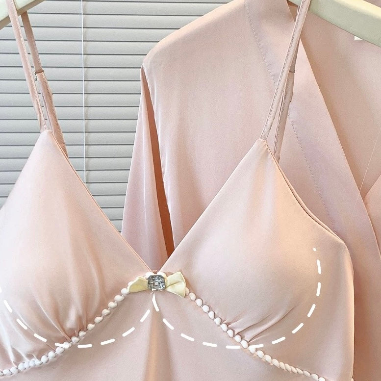 Silk Serenity Robe & Padded Chemise Night Set - Light Pink / M
