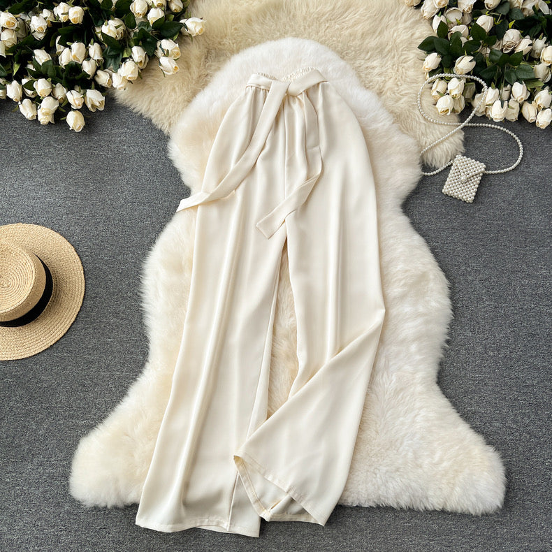 Frenchy Belted Wide Leg Satin Pants - White / One Size (Fits S to L)