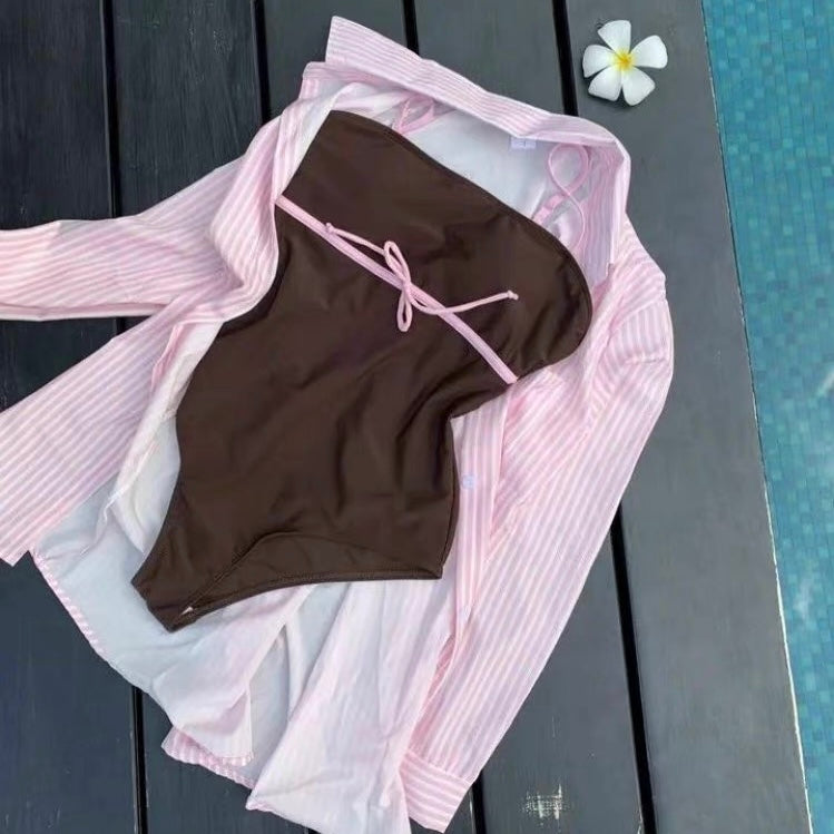 Costal Cowgirl Monokini With Shirt Set - Brown / S
