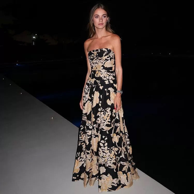 Dusk Floral Print Monokini With Skirt Set - Black / S