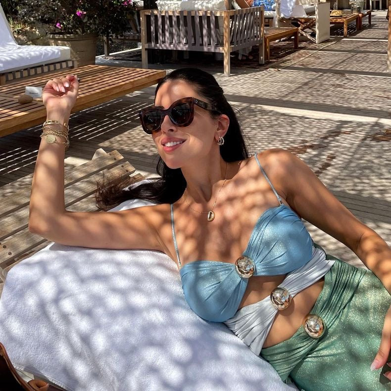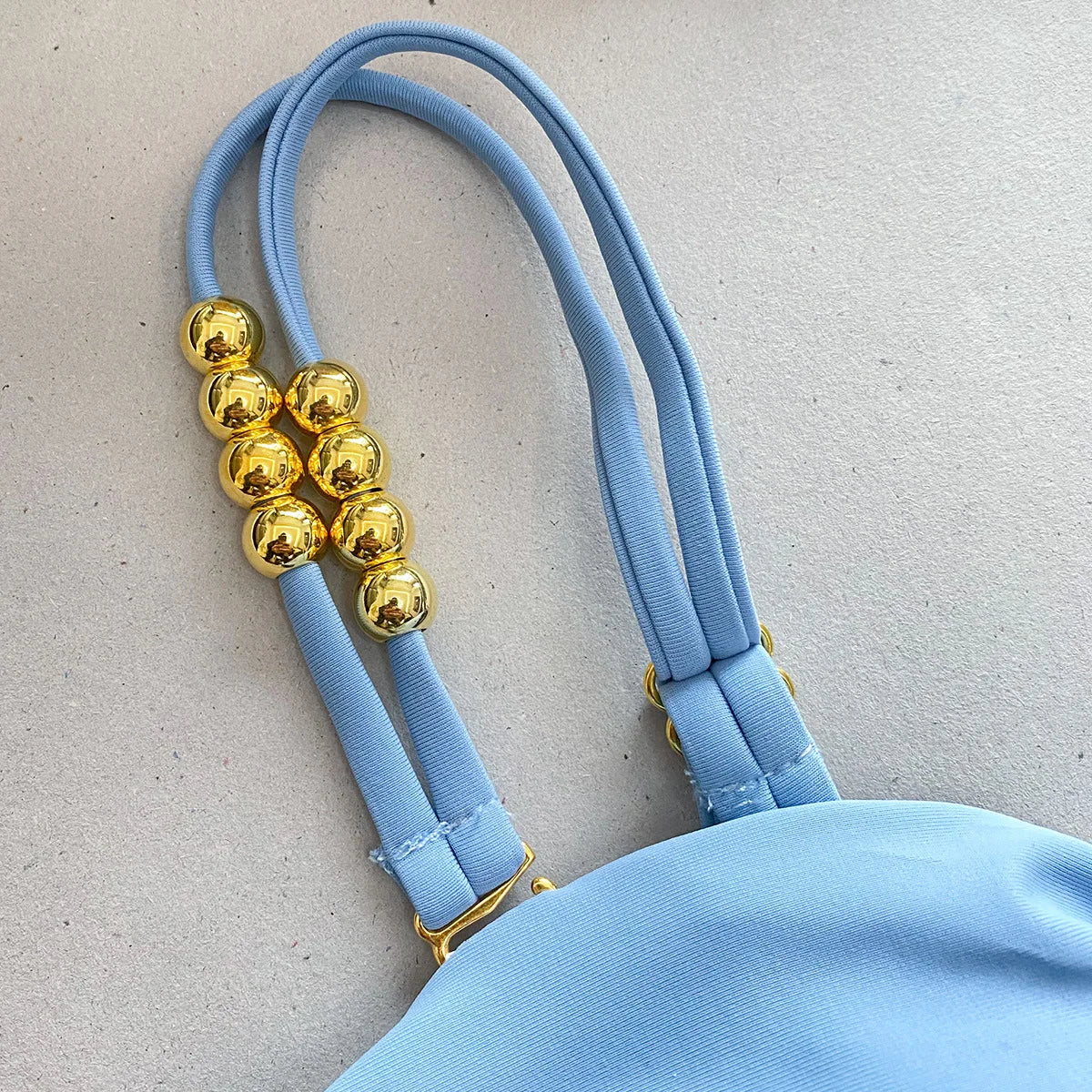 This stylish swimwear set features a fashionable monokini with intricate cut-outs and metallic accents, paired with a matching ruched skirt for a chic beach or poolside look. Perfect for those who want to make a statement, this designer swimwear offers a blend of elegance and allure. Enhance your summer wardrobe with this unique combination, ensuring you stand out in both comfort and style.