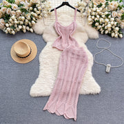 Embrace elegance with our delicate crochet two-piece set, featuring a tank top and a matching long skirt. This beautifully crafted ensemble offers a timeless and feminine look, perfect for beach outings or summer gatherings. The intricate crochet pattern adds a touch of sophistication, ensuring you stand out in style .