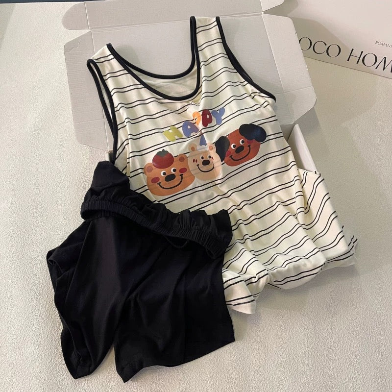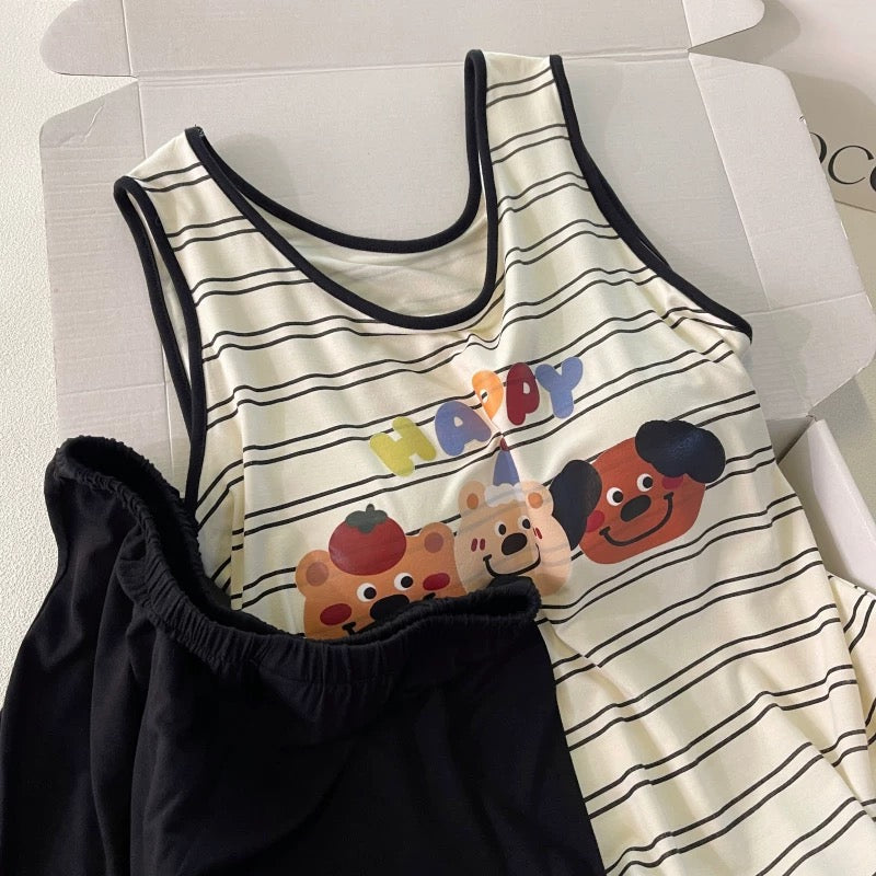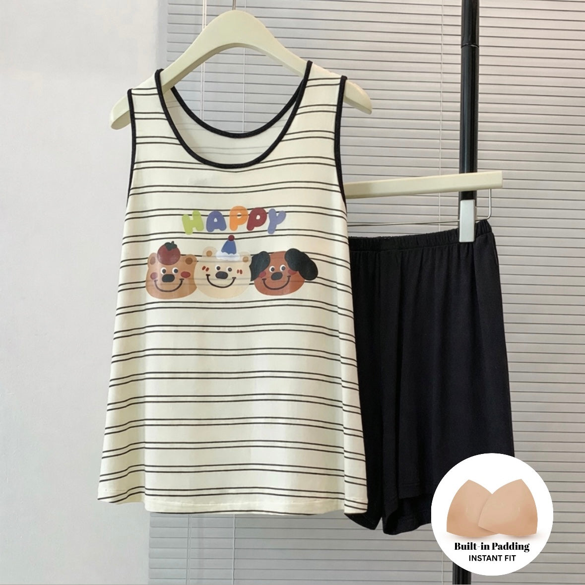 Happy Bear Stripe Padded Nightsuit Set – Cute Prints, Cozy Stripes & Nighttime Comfort