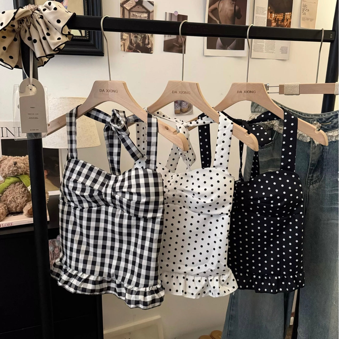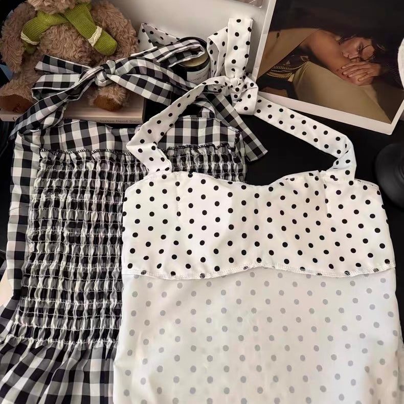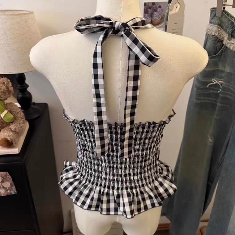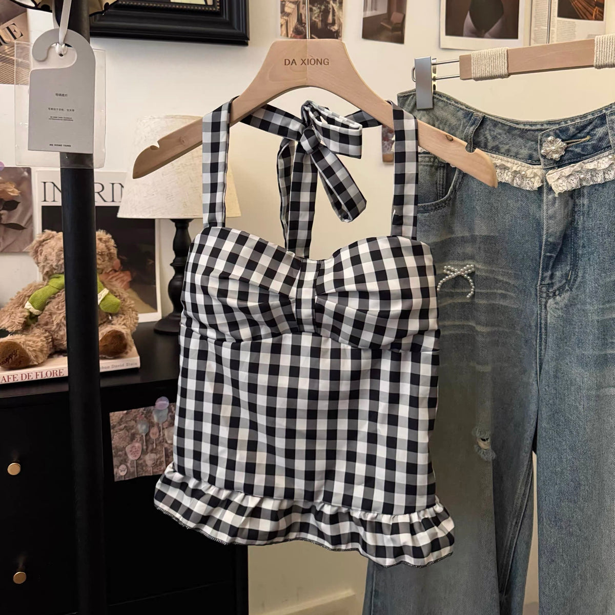 Juliet Ruffle Built-in Bra Top - Checkered / One size ( Fits till large )