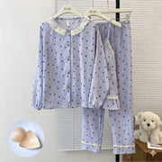 Lavender Lace Padded Nightsuit - 3pc Set - Light Blue / M
