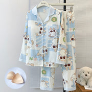 Midnight Belly Kitty Padded Nightsuit Set - Light Blue / M