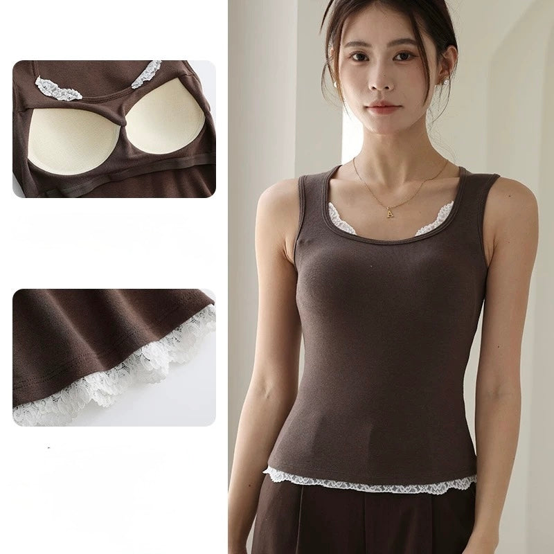Elevate your essentials with the Maison Softlace Built-in Bra Top, designed to blend soft lace detailing with effortless comfort. Featuring a built-in bra for gentle, secure support, this top offers a smooth, flattering fit without the need for extra layers. Crafted from breathable, stretchable fabric with refined lace accents, it feels light on the skin while adding a touch of feminine elegance. Perfect for casual wear, layering, or styled as a statement piece, this built-in bra top is ideal for women who love graceful design paired with everyday ease.