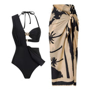 Sunset Palms Monokini & Sarong Set is your go-to beachwear for bold, effortless style. Featuring a sculpting monokini with a modern cut-out design and adjustable halter tie, this set flatters while offering confident support. Paired with a lightweight palm-print sarong, it adds versatility for beach walks, poolside lounging, or resort styling. Crafted from smooth, stretchable fabric, it ensures comfort, flexibility, and a perfect fit. Ideal for vacations, beach holidays, and summer getaways, this monokini and sarong set blends tropical elegance with contemporary swimwear fashion.