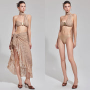 Ethereal Gilded Drape Luxe - 3Pc Set embodies refined elegance and modern sophistication. Designed with fluid, draped silhouettes and a luminous finish, this luxe set creates a graceful, figure-enhancing look for any special occasion. The soft, premium fabric offers a smooth, comfortable feel while maintaining a polished, high-end appearance. Subtle gilded accents elevate the design, adding a touch of glamour without overpowering its minimalist charm. Perfect for evening events, celebrations, or upscale gatherings, this versatile two-piece set delivers effortless style and confidence. Pair it with statement heels and accessories for a stunning, fashion-forward ensemble that turns heads.