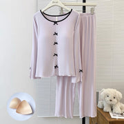 Drift into effortless comfort with the Violet Charm Padded Nightsuit Set, designed in a soothing violet hue with delicate black bow accents for a touch of elegance. Made from ultra-soft, breathable fabric, this nightsuit features a lightly padded top for gentle support and all-night ease. The relaxed-fit full sleeves and flowy bottoms ensure unrestricted movement, making it perfect for cozy evenings, lounging, or a restful night’s sleep. Ideal for women who love minimal yet stylish sleepwear, this set blends comfort, charm, and modern design seamlessly.